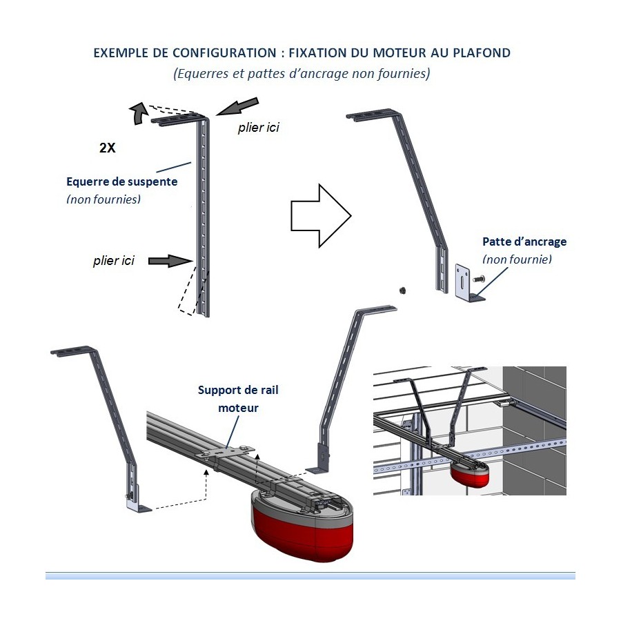 Il sert ainsi par la suite à suspendre le rail au plafond par l'intermédiaire d'équerres de suspente (non fournies).