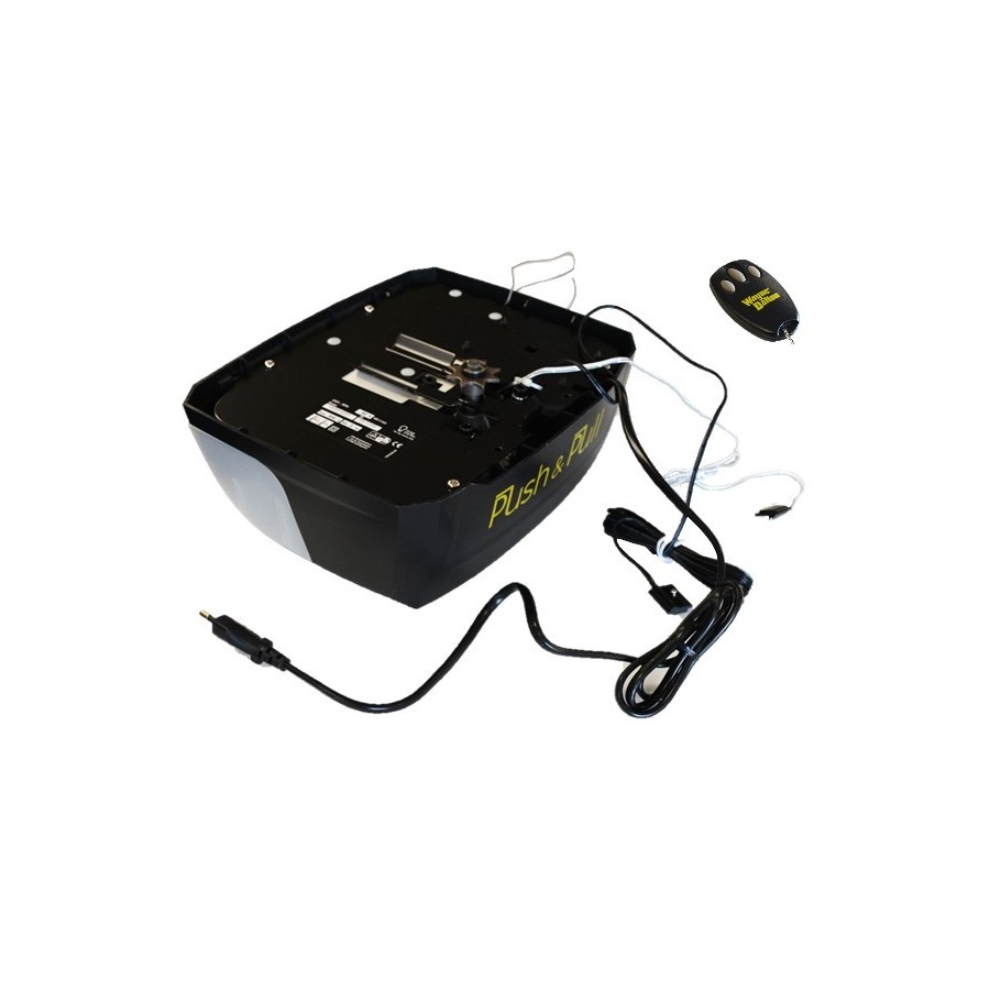 Wir empfehlen Ihnen, ihn durch einen Motorisierungskit ONE mit 600 Motoren zu ersetzen, der eine äquivalente Leistung (600N) hat. Der gelieferte Bausatz enthält einen Motorkopf, 2 Fernbedienungen und eine Schiene mit Kette (die Push&Pull-Schiene ist unzerbrechlich).