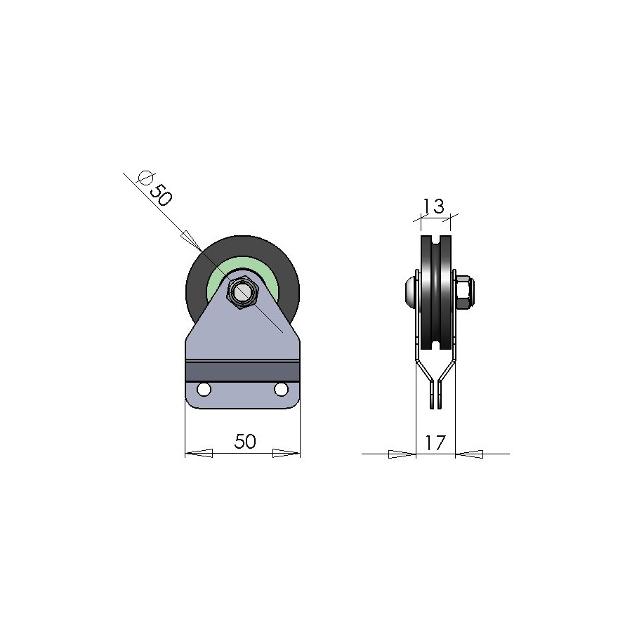 Mobile Nylon Pulley Durchmesser 50mm einzelne Kehle 'unterstützt'