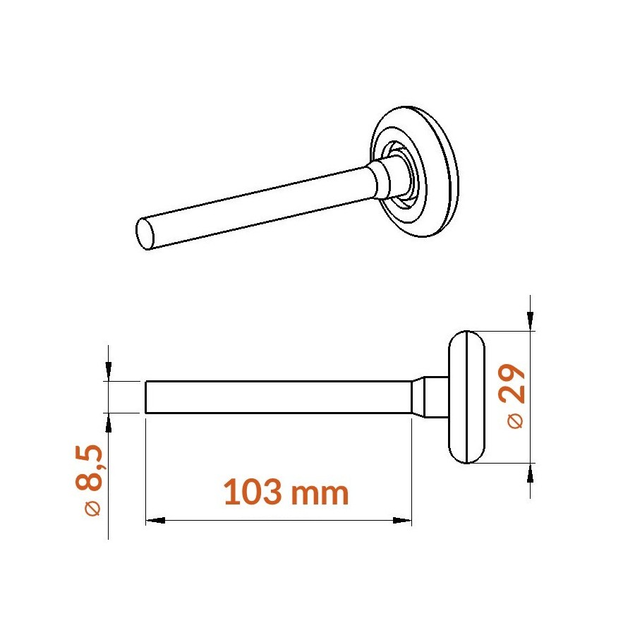 Wird mit einer kugelgelagerten Rolle geliefert - Stab Ø8,5 mm - rollende Ø1 Zoll = 29 mm