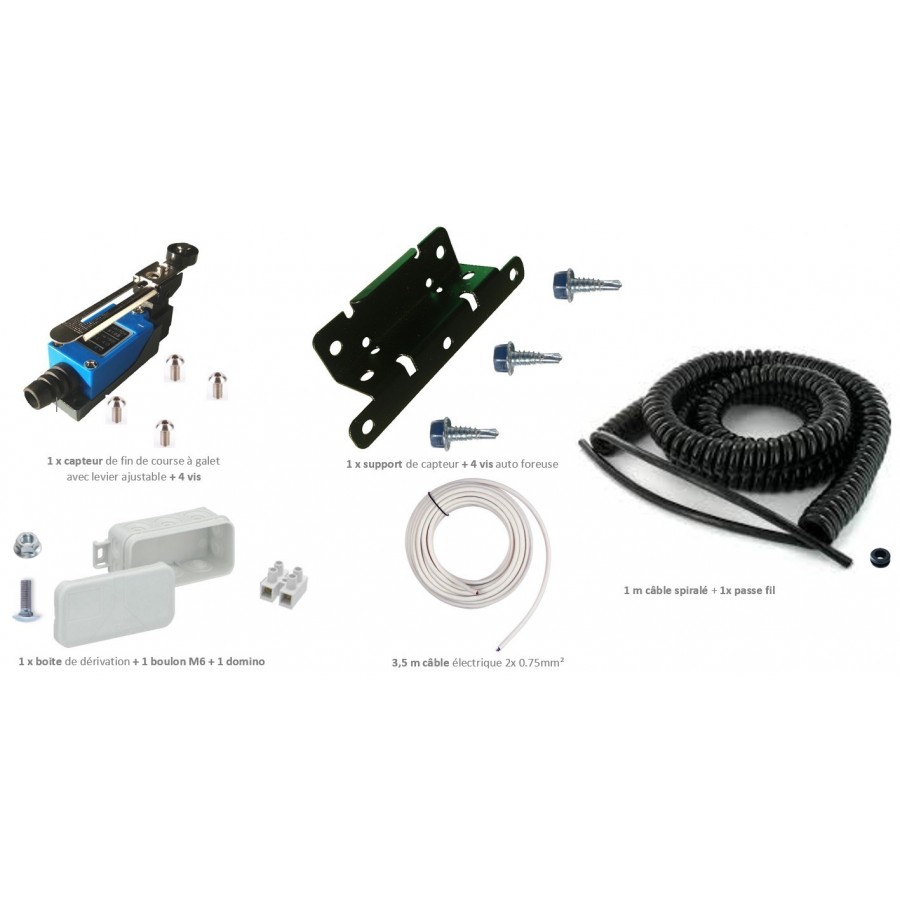 Dieser Bausatz ermöglicht die Installation eines Endschaltersensors an Ihrem Tor, der verhindert, dass sich das Tor öffnet, wenn es offen gelassen wurde.