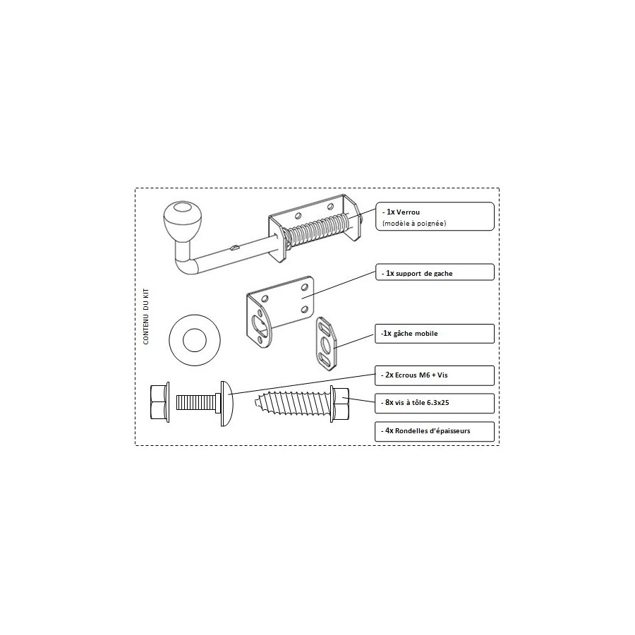 This kit allows you to further secure the closing of your gate by adding an additional closing point.
