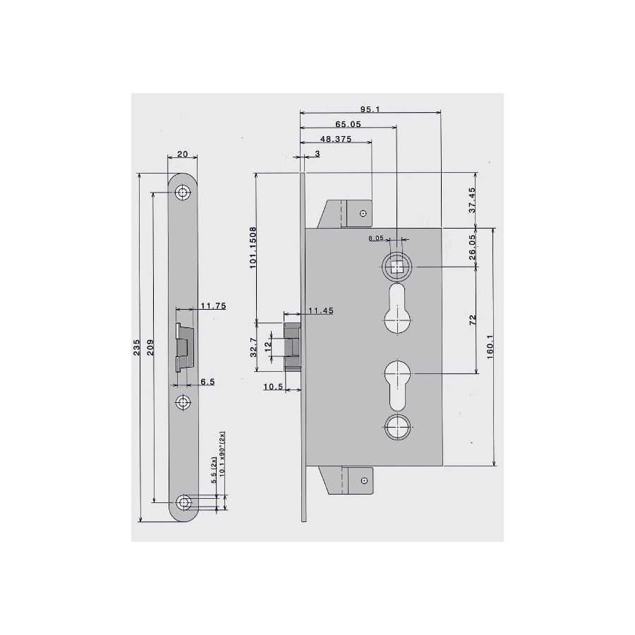 Designed to receive European cylinder and handle with 8x8mm square (not provided)