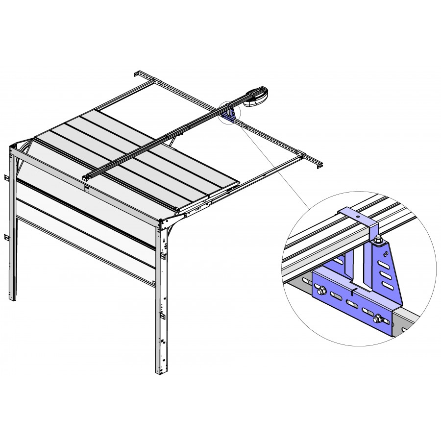 Garage door motor bracket to be placed on the spacer crossbar at the back of the door tracks (crossbar not supplied)