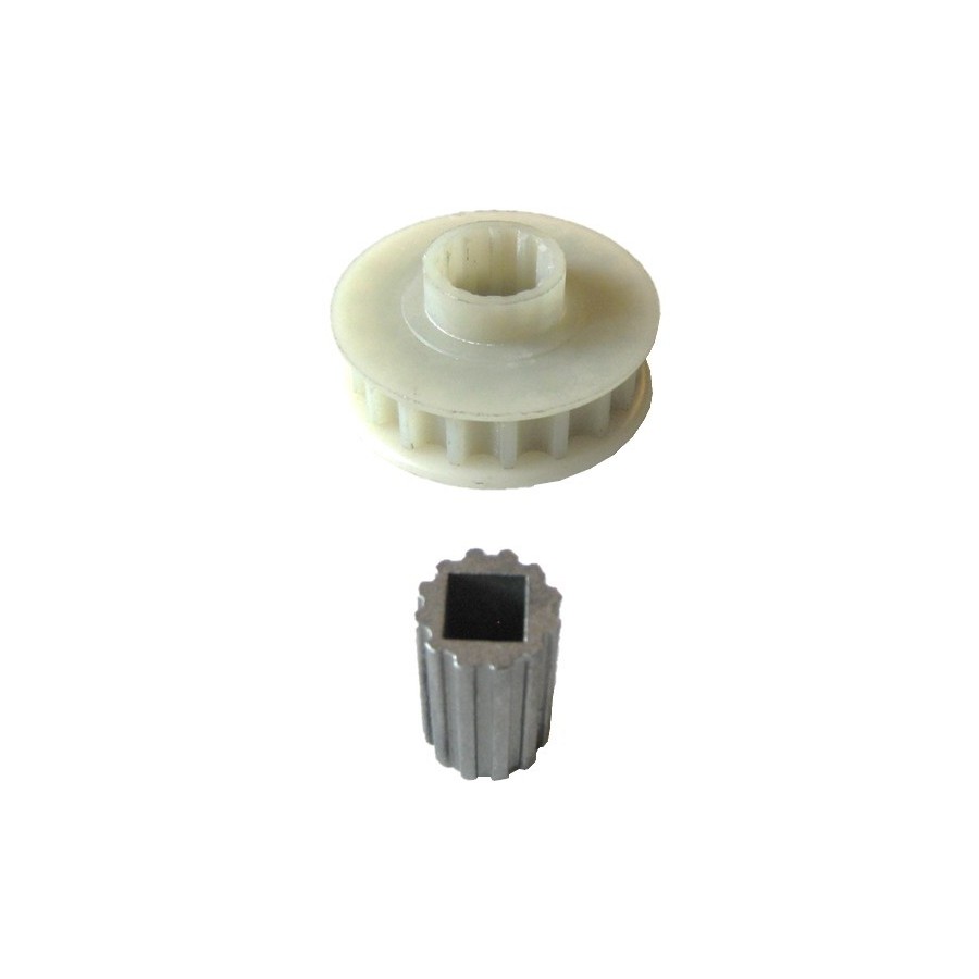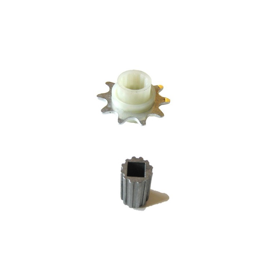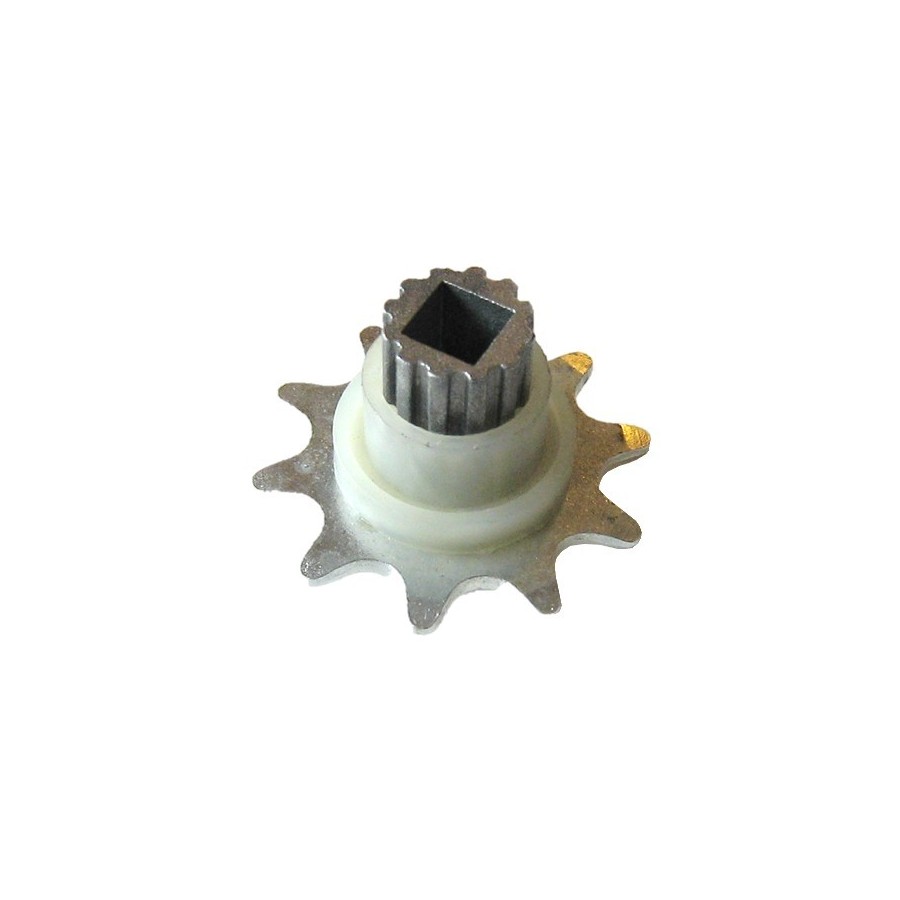 This sprocket wheel fits into the square output of the motor ONE and allows the chain or belt to be driven.