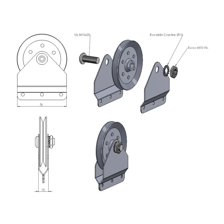 Poulie conforme à la description. Emballage soigné. Délai de livraison respecté. Renseignements téléphonique avant la commande : la personne au téléphone est très gentille et efficace.