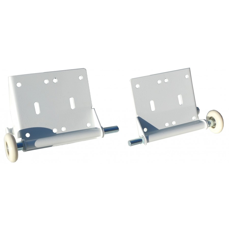 Bottom brackets roller for sectional garage door supplied in pairs with 2 white castors.