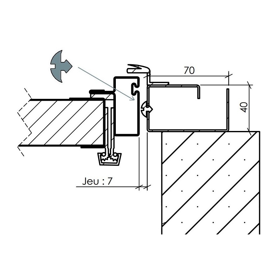 Fits in the grooves at the top of the jambs and guides the door leaf during opening and ensures that the lateral clearance of 7 mm between the door leaf and the frame uprights is maintained.