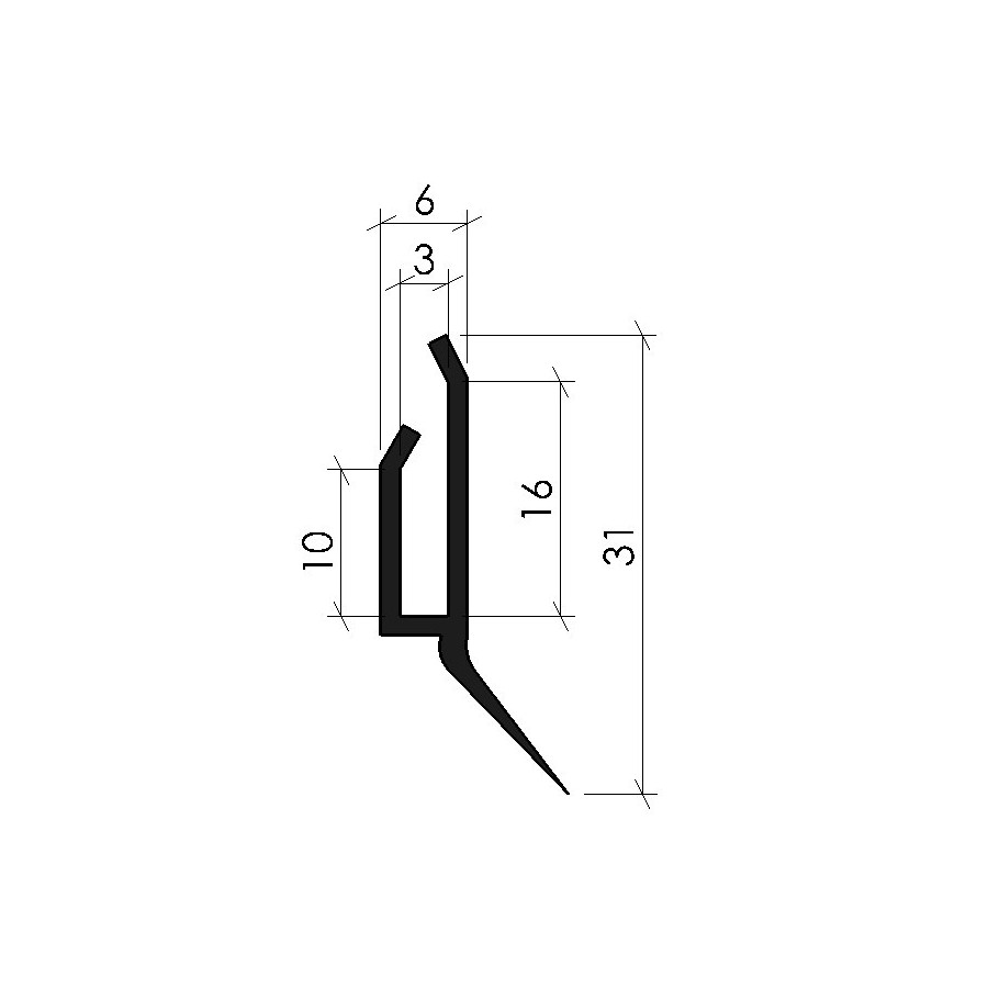 Ce joint ne doit recourir que la partie droite du rail (voir schéma). Il se recoupe facilement avec une scie à métaux ou un sécateur.