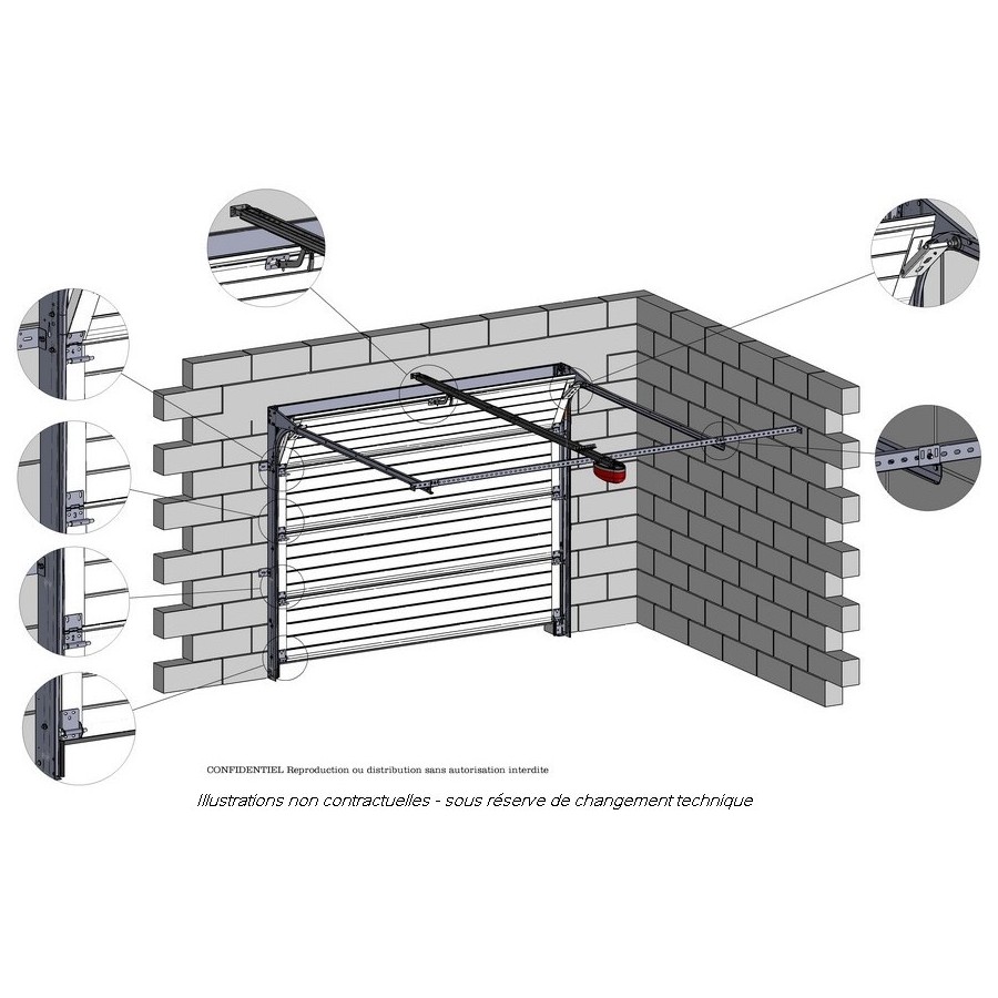 Le système de rail à l'air un peu léger mais ça tient. par contre la traverse haute du cadre ne peut pas être fixée au linteau, et du coup reste branlant... Le moteur pas de problèmes hormis le bouton manuel du bloc moteur qui est dur à actionner. La notice n'est pas très clair sur au niveau du raccordement porte/chariot de moteur ainsi que la hauteur de fixation du rail de moteur. Une porte a prix correcte, qui mériterait un peu plus de robustesse au niveau du cadre. Petit plus, le laquage RAL pour 300€ très bien réalisé.