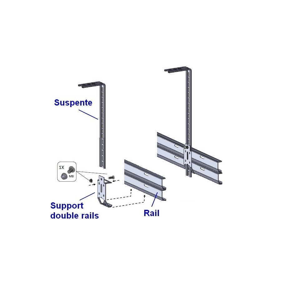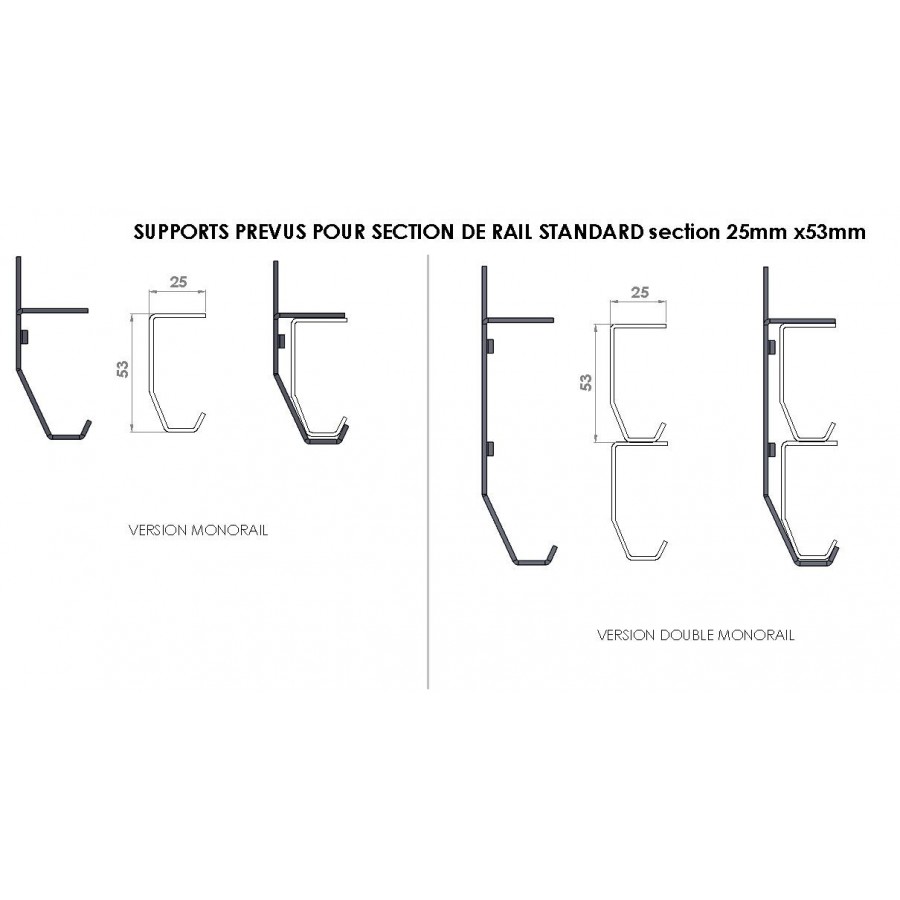 Deux types de supports (+ 1 boulon M8) : pour mono-rail ou double-rails