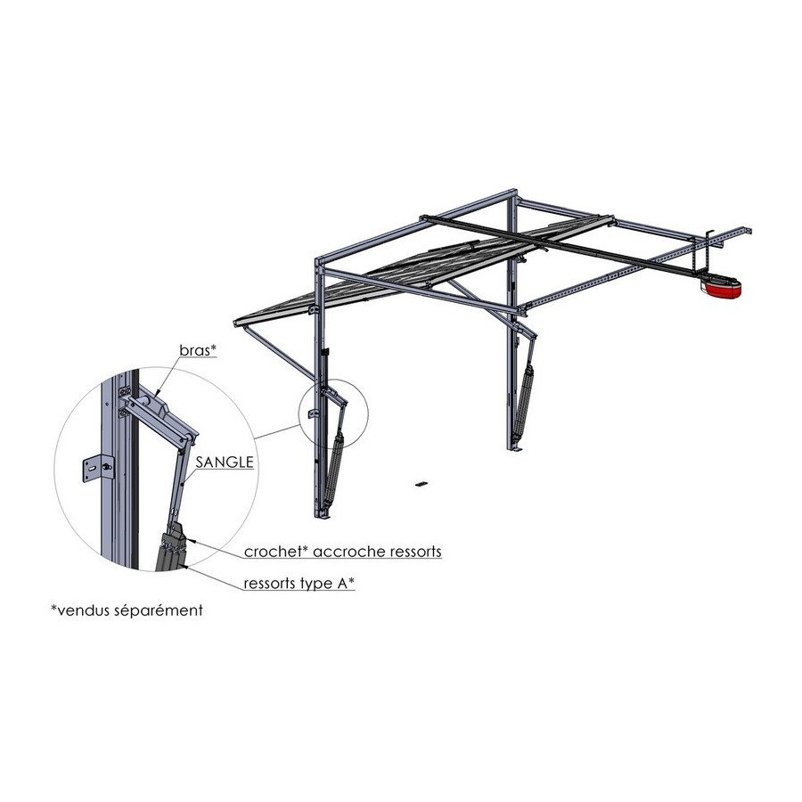 Permet de faire la liaison entre vos ressorts accrochés au bas de votre montant et l'axe du bras de la porte